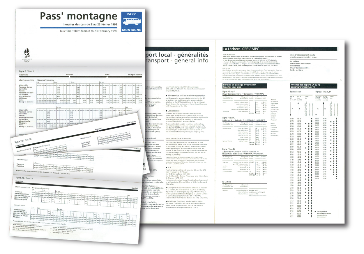 Responsable de l’ensemble de la signalétique (production de 15 000 panneaux) et des documents d’informations relatifs aux transports sur les 12 sites alpins des jeux olympiques d’hiver (réseaux de bus locaux, cartographie de l’ouverture et fermeture des routes, trafics des cars en liaison avec les différentes compétitions et pour les différents types de public.