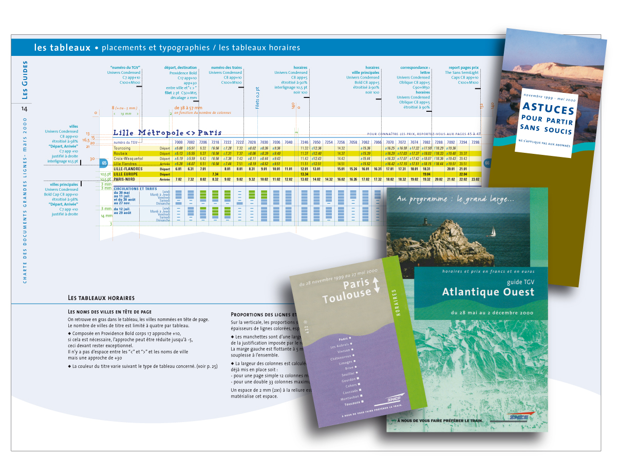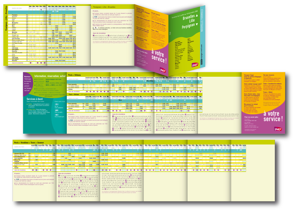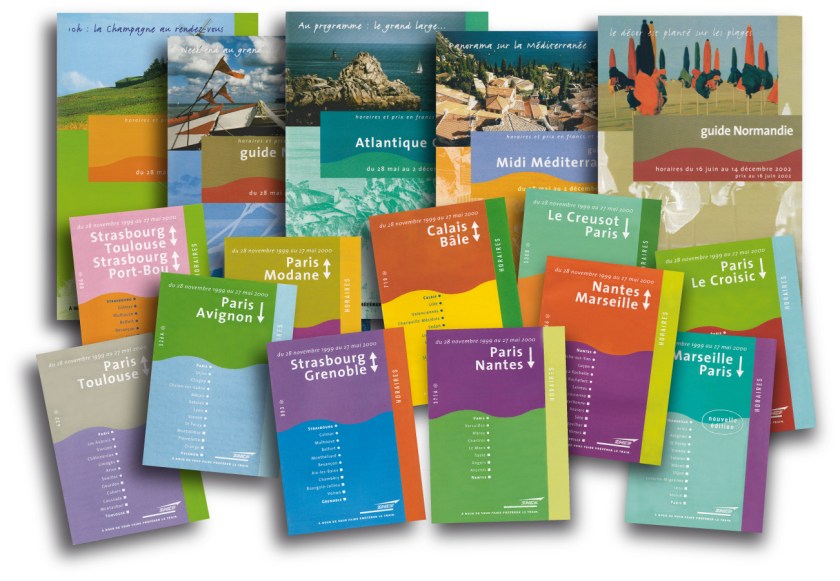 Prise en charge de la création de l’ensemble des documents (guides, fiches horaires, carte horaires, CD récapitulatif, divers documents informatifs) à la suite d’un appel d’offre remporté au sein de Plan Créatif. Un travail sur 18 mois qui comprends l’élaboration de toute la charte des caractéristiques graphiques et typographiques pour l’ensemble des documents et de chacun des types de page qu’ils comportent.
